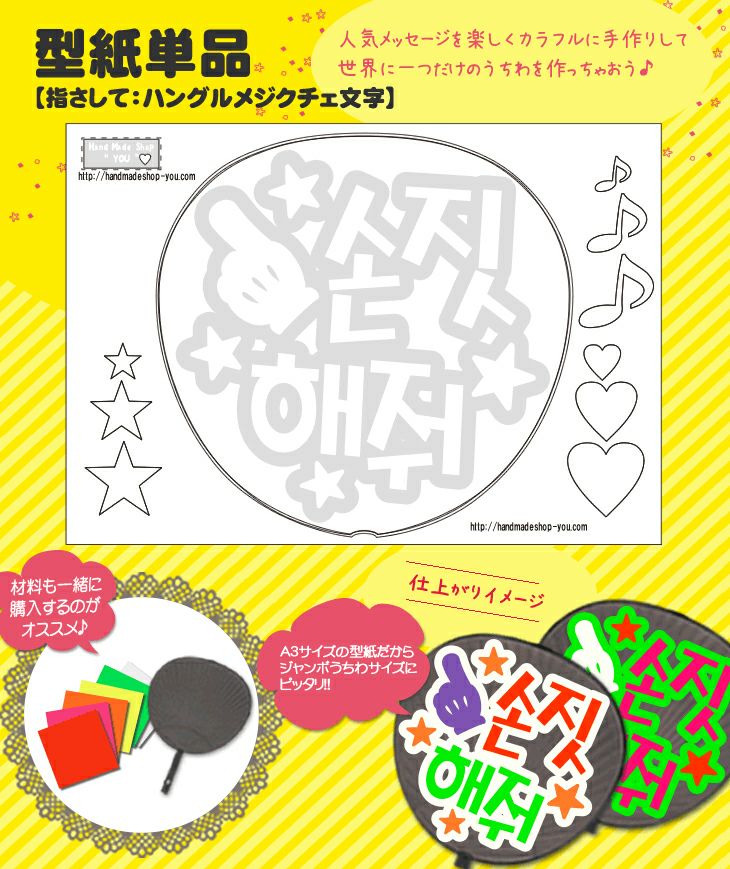 うちわメッセージ型紙 ●韓● 【指さして:メジクチェ文字】 推し活 グッズ