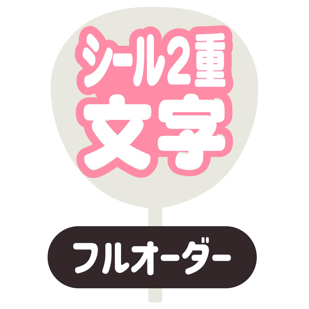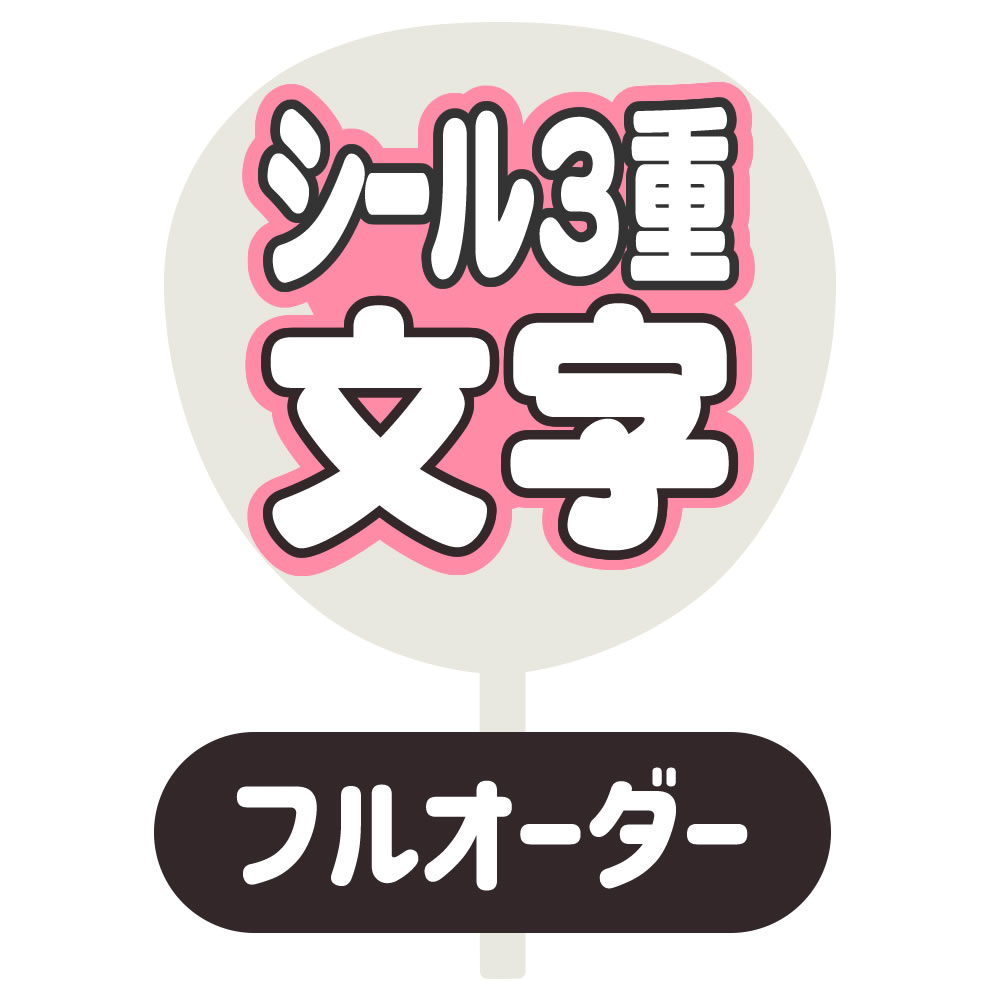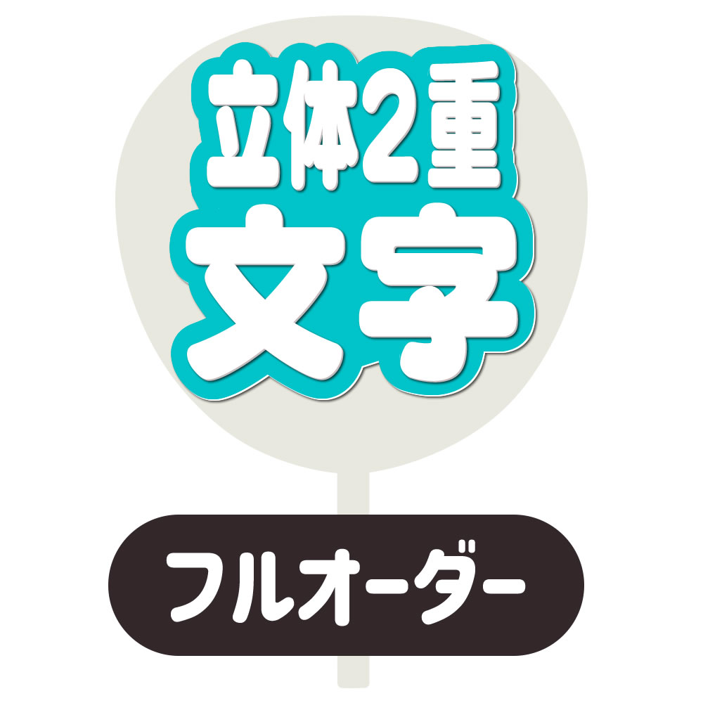 「片面うちわ」は、うちわの片面に文字をすべて貼りつけた状態、「両面うちわ」はうちわの表裏両面に文字を貼りつけた状態で出荷致します。 「うちわ用文字」は、うちわに貼りつけず(うちわはつきません)文字のみの状態で出荷致します。また、2重・3重文字は全て重ね貼りした状態での出荷となります。