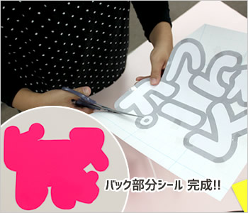 カットした型紙を貼り付けたシールを、型紙に沿ってはさみ又はカッターでカットします。