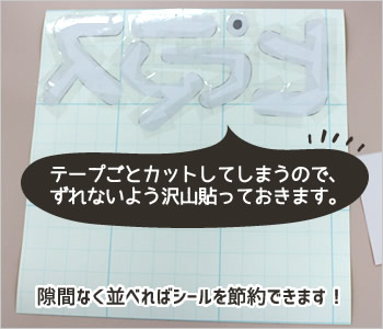 5を型紙に沿ってはさみ又はカッターでカットすれば、文字部分のシールが完成です。