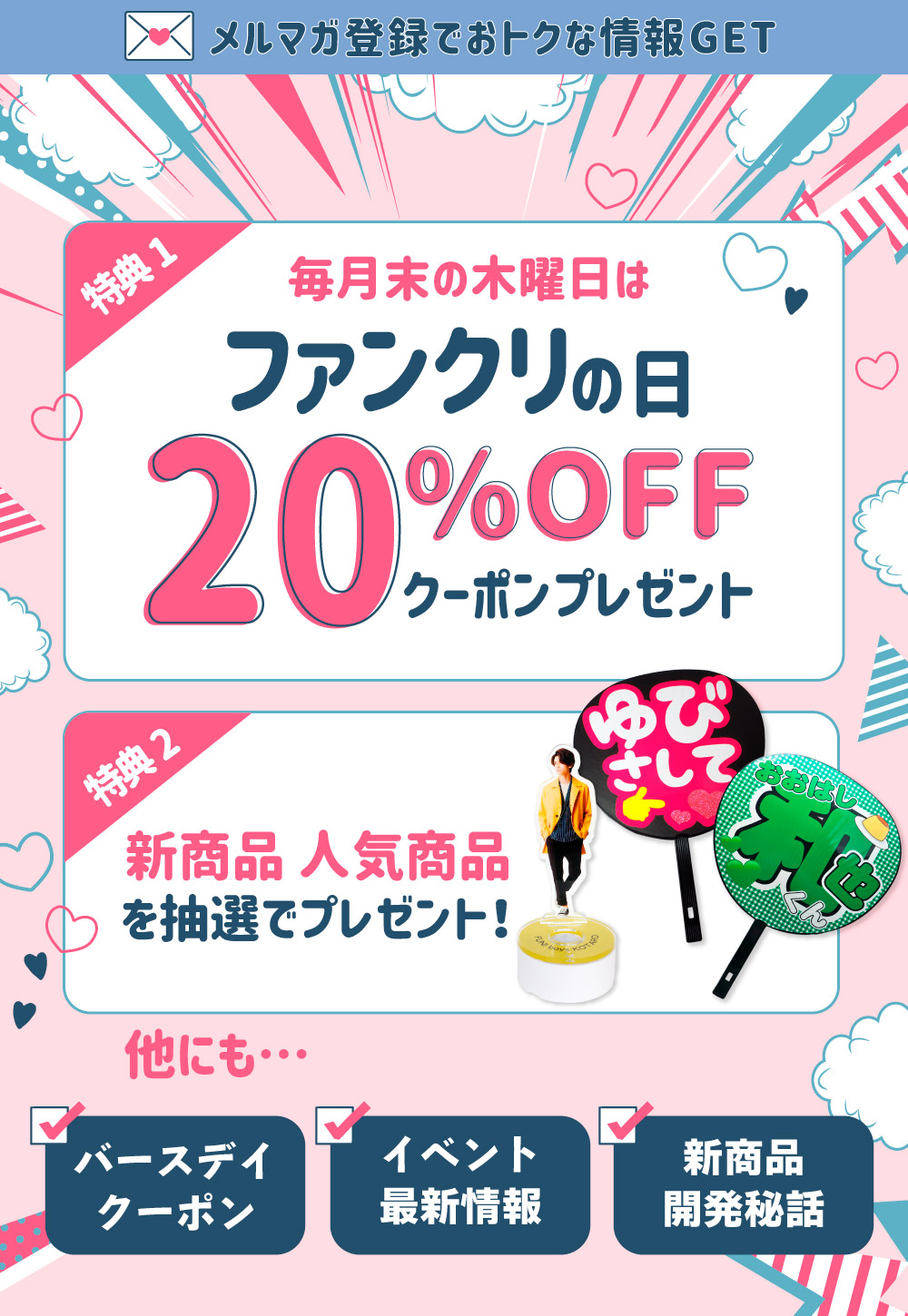 メルマガ会員限定のお得な情報をお届けします。